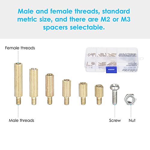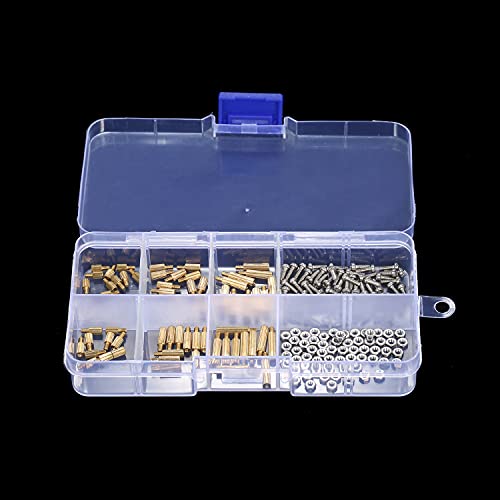 De 180-delige afstandhouderset bevat 6 verschillende maten M3 afstandhouders (elk 10 stuks), 60 M3 schroeven en 60 M3 moeren.