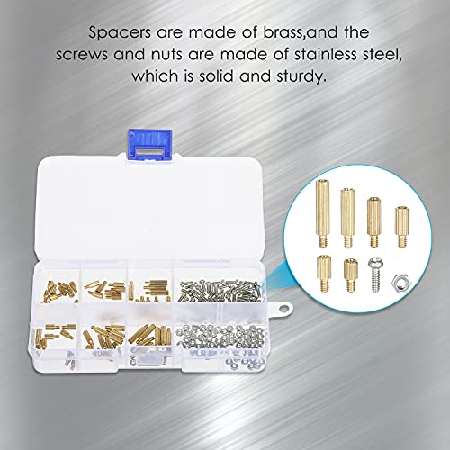 De 260-delige afstandsset bevat 8 verschillende maten (elk 20 stuks), 50 M2-schroeven en 50 M2-moeren.