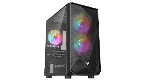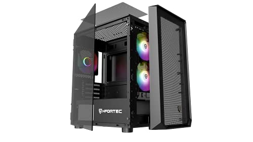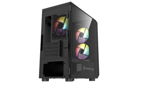 Nfortec DYS, Gaming-Tower met 3D-design-front, 2 stoffilters, zijglas met scharnieren en ARGB-verlichting, wit