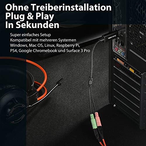 DuKabel externe geluidskaart kan de bestaande geïntegreerde audio-oplossing van je laptop of draagbare computer vervangen. Plug and Play. Geen stuurprogramma nodig. Compatibel met elk standaard USB-audio-klasse systeem zoals Windows XP tot 10, Linux, Windows Surface 3 pro, Raspberry Pi, Mac OS X en Google Chromebook.