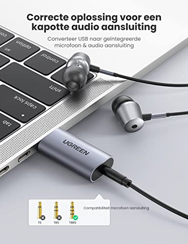 Multifunctioneel & Praktisch:De UGREEN USB 2.0 externe geluidskaart heeft een 4-pins TRRS aux connector die compatibel is met laptop/ PC/ PS5/ PS4/ Raspberry Pi 4 enz.Die zowel audio ingang als microfoonuitgang ondersteunt.Ondersteuning draadcontrole functieEen ideale oplossing voor apparaten met een defecte interne geluidskaart,zonder audio jack of met losse microfoon/ koptelefoon aansluitingen.