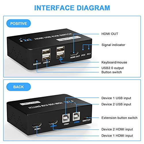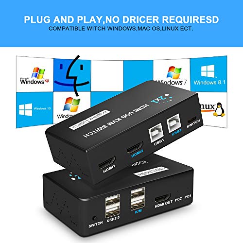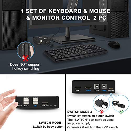 Specification: KVM Switch HDMI 4K, USB KVM Switch HDMI 2 in 1 out, Voor 1 set Toetsenbord,Muis,Monitoren,Printerbesturing 2 Computers…