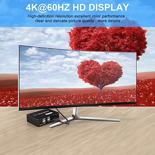 【Ultra hd 4k @ 60hz visueel genot】 KVM switch HDMI 2 port box voldoet aan de HDMI 1.4- en HDCP 1.3-normen en ondersteunt de maximale resolutie van 4K @ 60Hz (3840×2160), waardoor de beeldweergave exquise en realistischer wordt, de kleuren helderder en wendbaarder. De 4K HDMI-switcher heeft een ingebouwd automatisch aanpassingssysteem om het beeld helder en vloeiend te maken. Het kan natuurlijk achterwaarts compatibel zijn met lagere 1080p-, 720p-resoluties