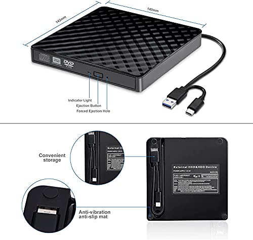 【Extern dvd-station met brede compatibiliteit】 Draagbare cd-dvd-station is compatibel met de meeste systemen: Windows 10/8/7, Vista 7/8, XP, Linux, Mac OS10.6 of hoger. Het ondersteunt ook verschillende schijven: cd-r, cd-rom, cd+/-rw, dvd-rom, dvd-r, dvd+/-rw, dvd-r DL en vcd-rom-schijven (Chromebook wordt niet ondersteund) Voor de desktops, deze usb-cd-drive moet worden aangesloten op de usb-poort op het moederbord.