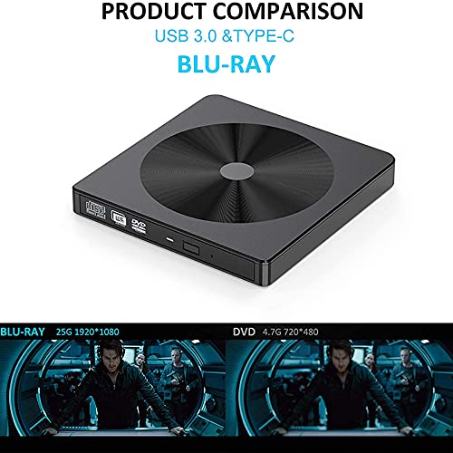 [Latest HD Burning Technology ] The external blu ray drive has a larger storage capacity and a faster reading and recording speed. Blu-ray reading speeds are up to 6x, DVDs up to 8x, and CDs up to 24x. The external Blu-ray Reader supports 8.5G 4.7G 700M CD DVD burning capabilities. Advanced high speed 3.0 interface,up to a maximum of 5Gbps(6X faster than 2.0(480Mbps)) & Type-C interface has strong error correction ability, impact resistance, low noise and low power consumption.