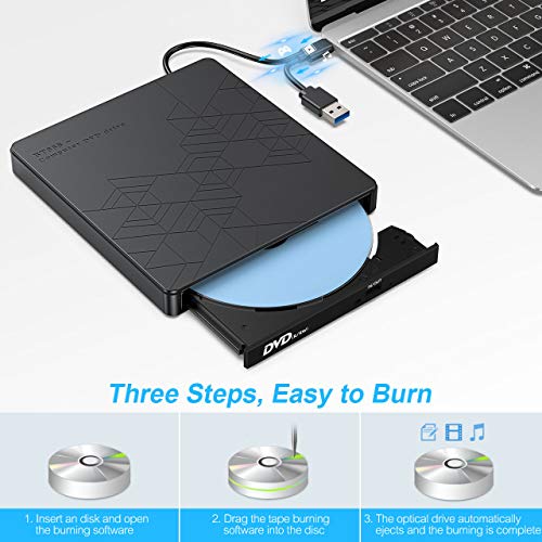 Specification: TedGem Externe DVD CD Drive, Brander Lezer, Type-C USB 3.0 Draagbare CD DVD Drive, Hoge Snelheid Gegevensoverdracht…