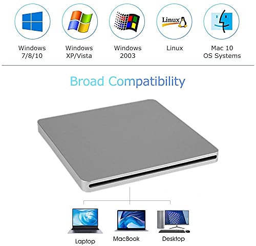 【Geavanceerde compatibiliteit】: externe cd-speler kan cd’s, dvd’s en VCD’s in verschillende formaten afspelen. Mac OSX Win98 SE / ME / 2000 / XP Win7 en Win8 / Win10 ondersteund. Geschikt voor desktop-pc’s, laptops, all-in-one, superbooks, netbook-harde schijven enz.