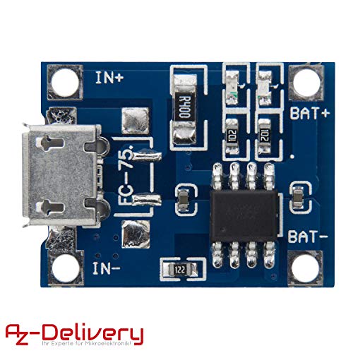 Specification: AZDelivery 5 x TP4056 Micro USB 5V 1A laadregelaar Lithium Li – Ionenbatterijlader module Inclusief E-Book!